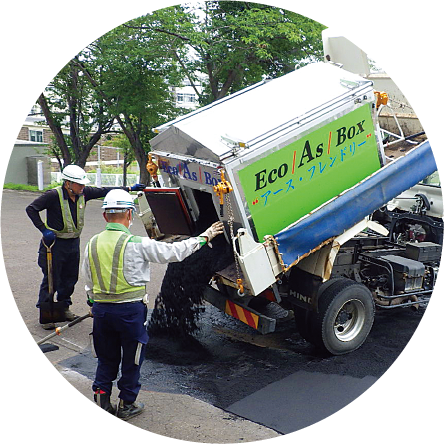 遠距離プラントからの移動時間の問題解決(地方におけるプラントの空白化地域対策)に有効で、天候の急変などによる待機時間のAs合材の温度低下を抑え、品質確保が可能です。